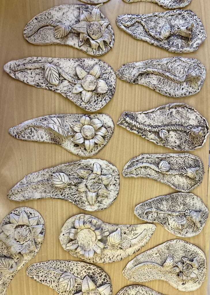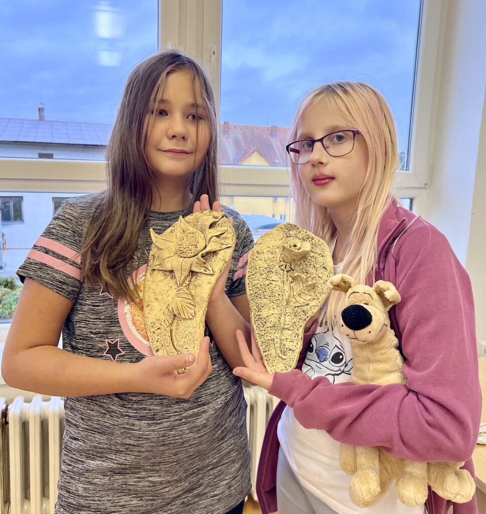 Začátek školního roku jsme zahájili tvorbou růží, slunečnic a vlčích máků. Závěsná destička s motivem květin dětem připomněla práci s keramickou hlínou, její tvárnost a různorodost. V každém výtvoru se odráží jedinečnost jeho tvůrce.