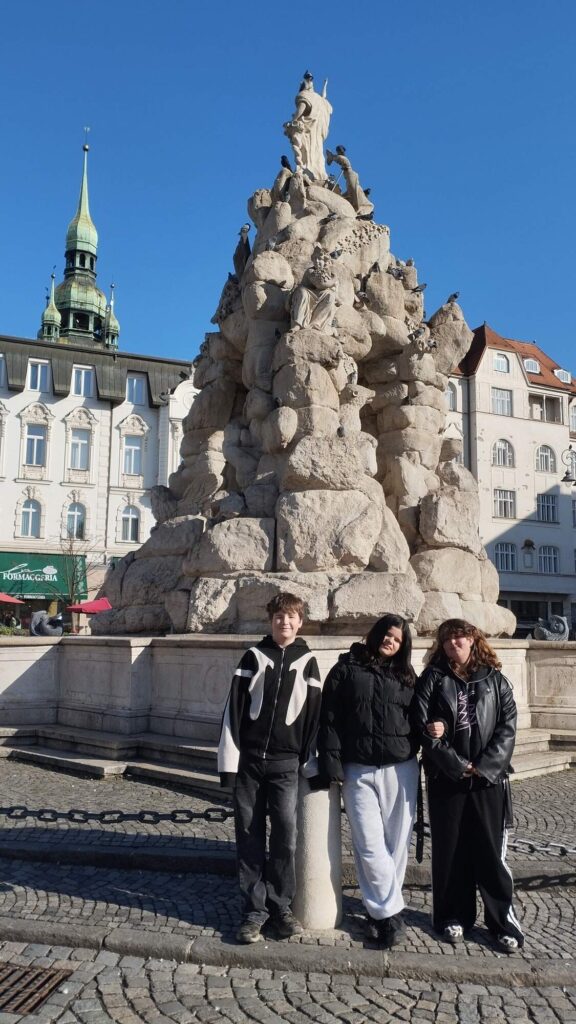 Po prohlídce jsme se vydali na procházku na Petrov, kde jsme si užili slunečné počasí a dali si svačinu s krásným výhledem na město. Následovala další procházka na náměstí Svobody, kde právě probíhaly velikonoční slavnosti. Atmosféra byla velmi příjemná a všude panovala dobrá nálada.