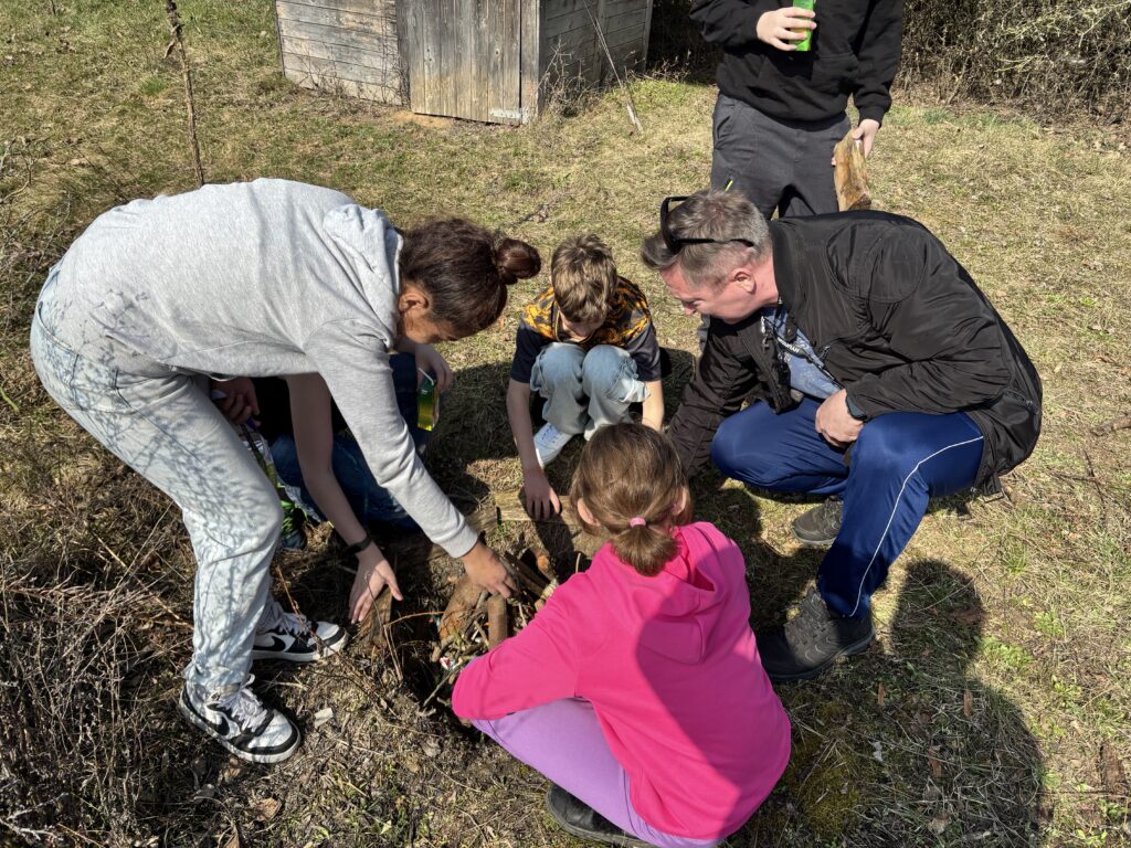 Nejprve jsme si společně povídali o tom, jak správně a bezpečně zacházet s ohněm v přírodě – kde je možné oheň rozdělat, jak připravit ohniště, čím oheň podpořit a naopak co rozhodně nedělat. Žáci si také vyzkoušeli různé způsoby rozdělávání ohně a dozvěděli se, jaké materiály jsou k tomu nejvhodnější.
