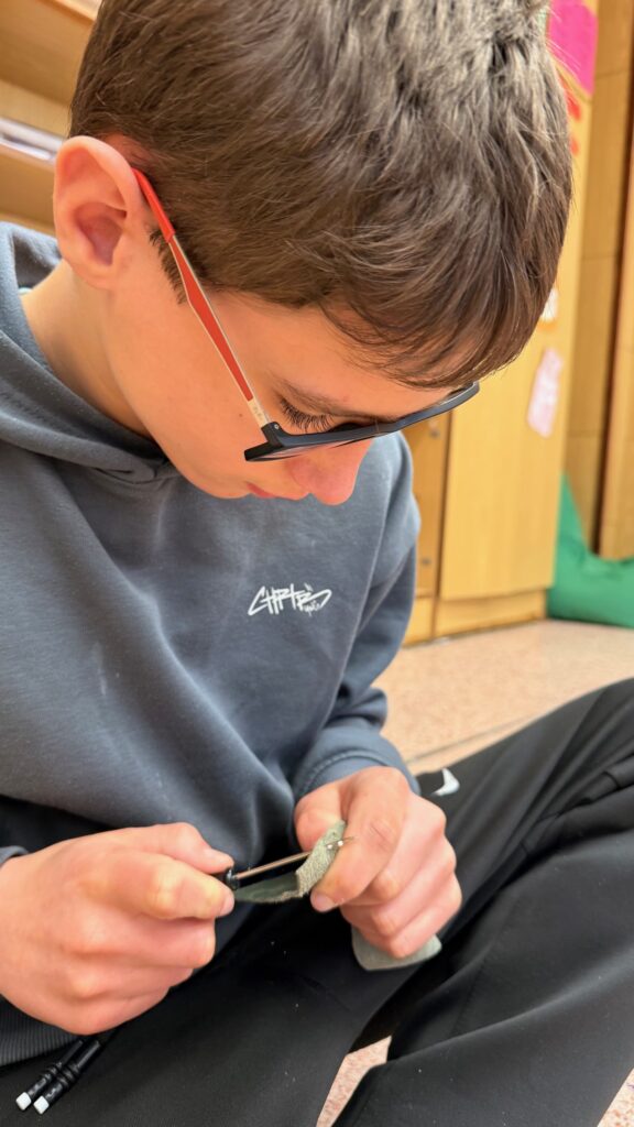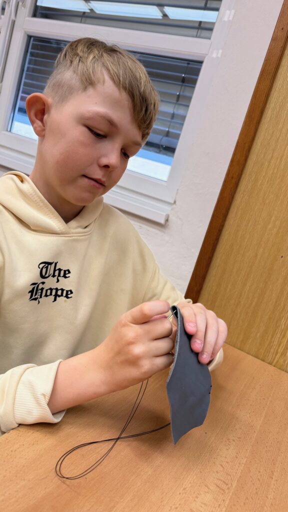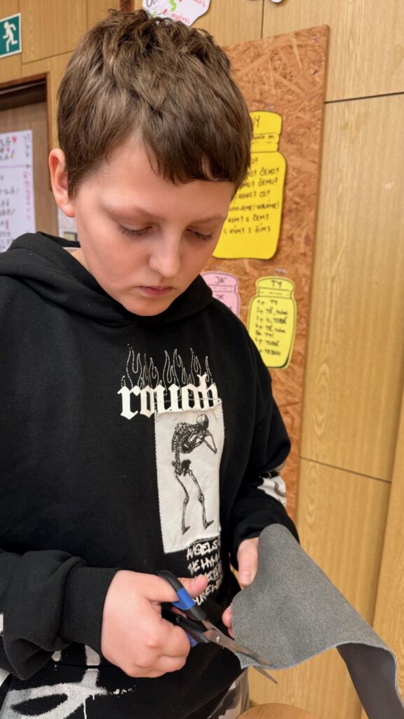 Kluci se do šití pustili s velkým nadšením a odhodláním. I když začátky nebyly úplně snadné a někteří museli svést první „boj“ s jehlou a nití, vše nakonec zvládli na jedničku. Naštěstí se celá aktivita obešla bez zranění a výsledkem jejich přibližně hodinové soustředěné práce byly opravdu krásné a povedené výrobky.