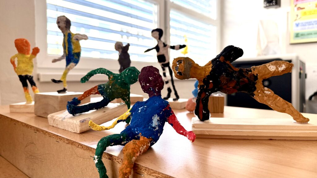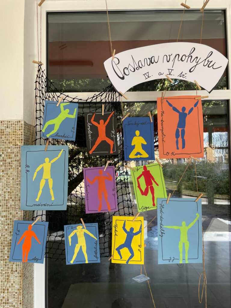 Žáci 4. a 5. ročníku se v hodinách výtvarné výchovy delší dobu věnovali tématu stavby lidského těla a zachycení pohybu. Nejprve si vyzkoušeli kresbu postavy podle základních pravidel proporcí. V navazujícím cvičení se zaměřili na znázornění pohybu pomocí zjednodušené (minimalistické) figury na papíře.