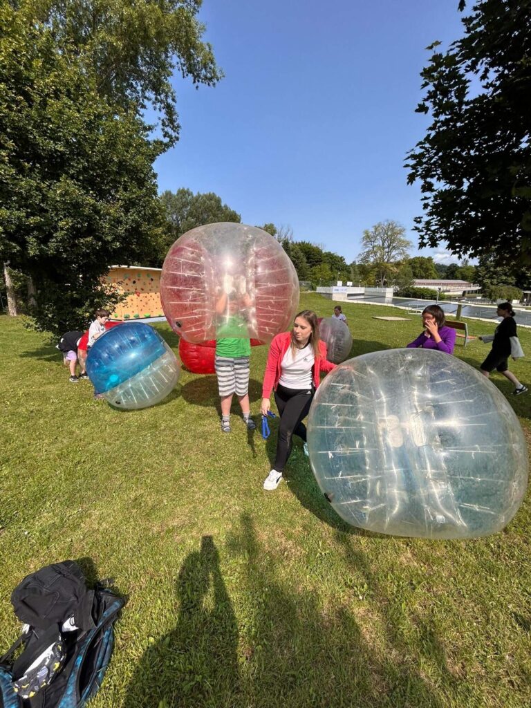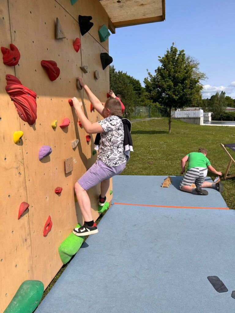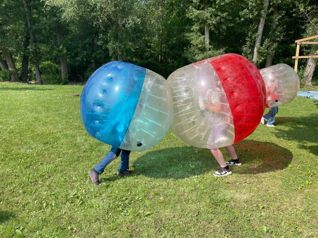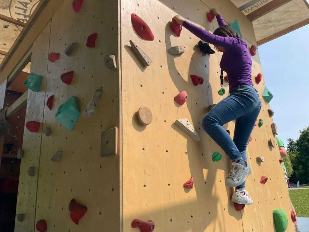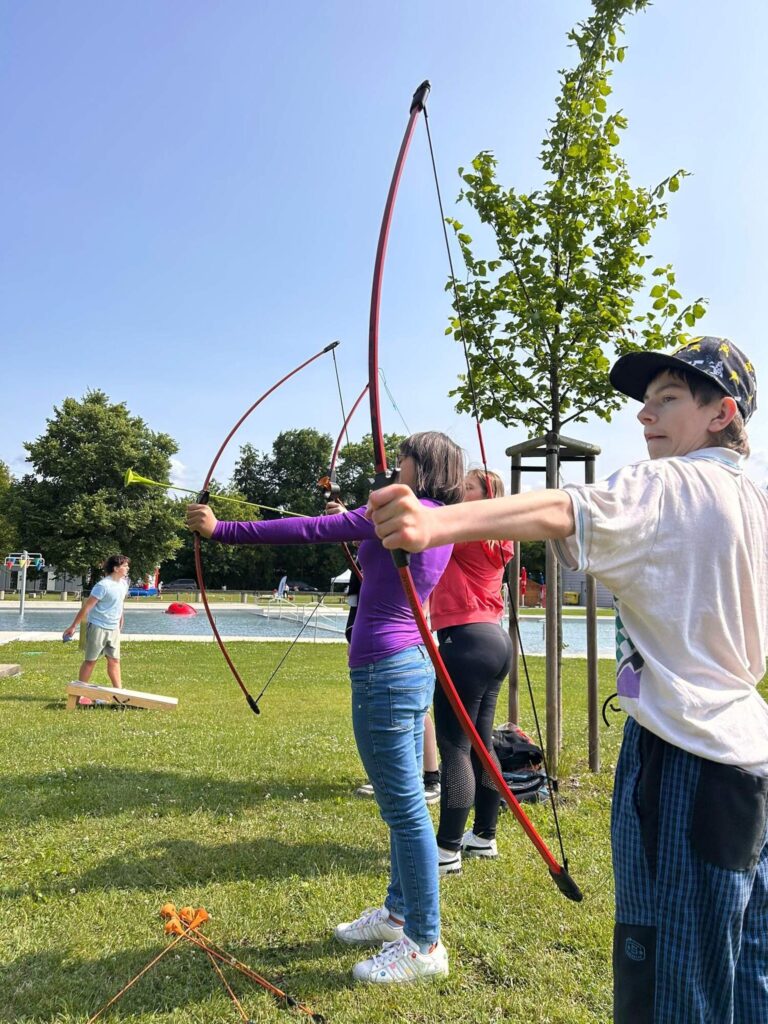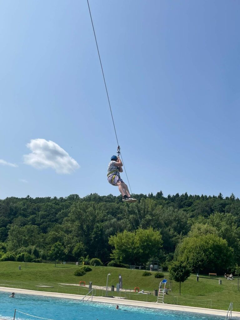 Hned po příchodu na nás čekalo deset rozmanitých stanovišť, která prověřila nejen fyzickou zdatnost, ale i týmového ducha a odvahu. Děti si vyzkoušely atletickou rozcvičku, střelbu z luku, zdolávaly lezeckou stěnu, hrály plážové a míčové hry, a ti nejodvážnější se spustili po 130 metrů dlouhé zipline!