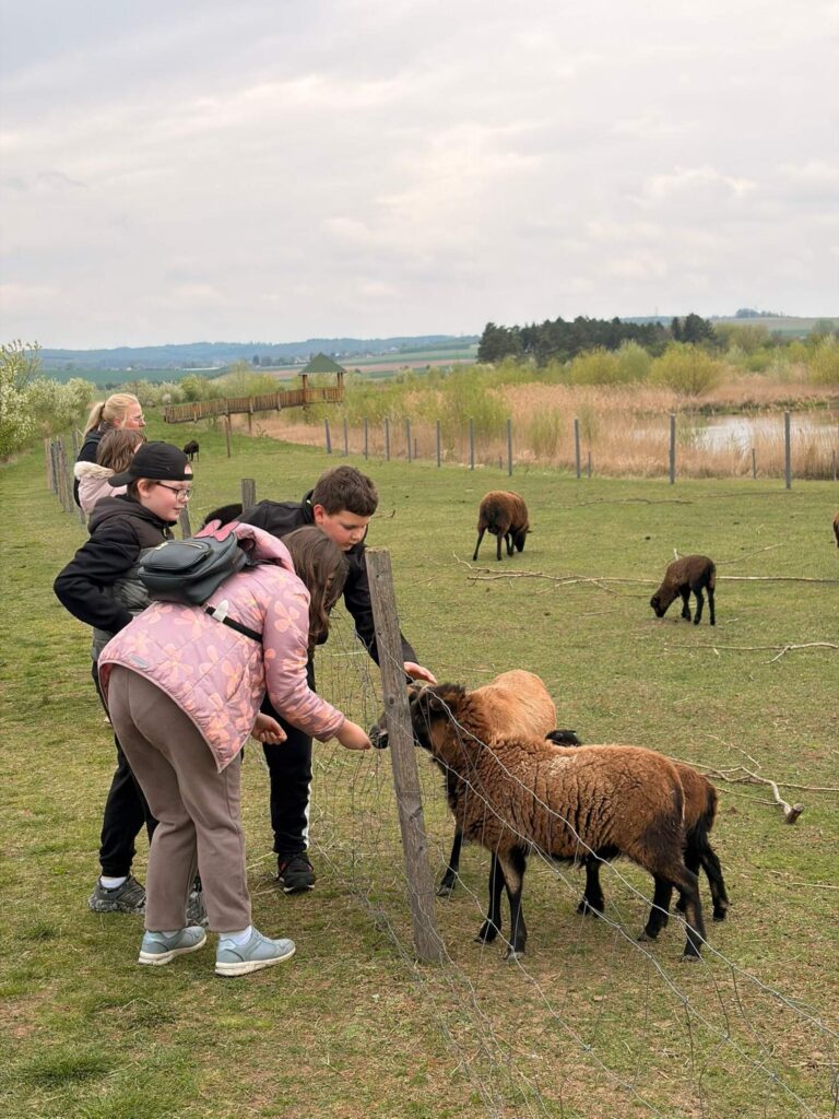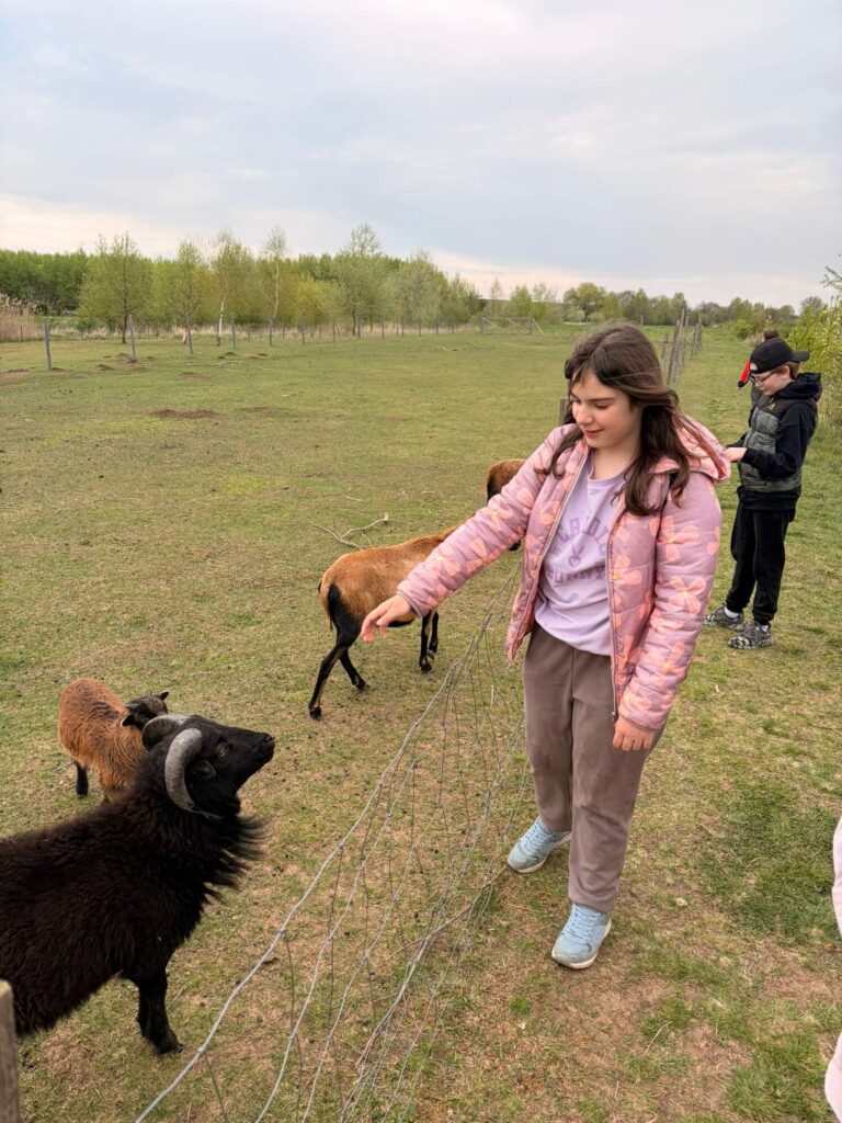 Hned po příchodu si žáci s nadšením užili místní hřiště, kde se vyřádili, protáhli tělo a užili si společné chvíle plné smíchu. Velkým lákadlem však byla i zvířata – zejména milé kozy, které si děti mohly pohladit a pozorovat zblízka. Pro mnohé to byl nezapomenutelný kontakt s přírodou.