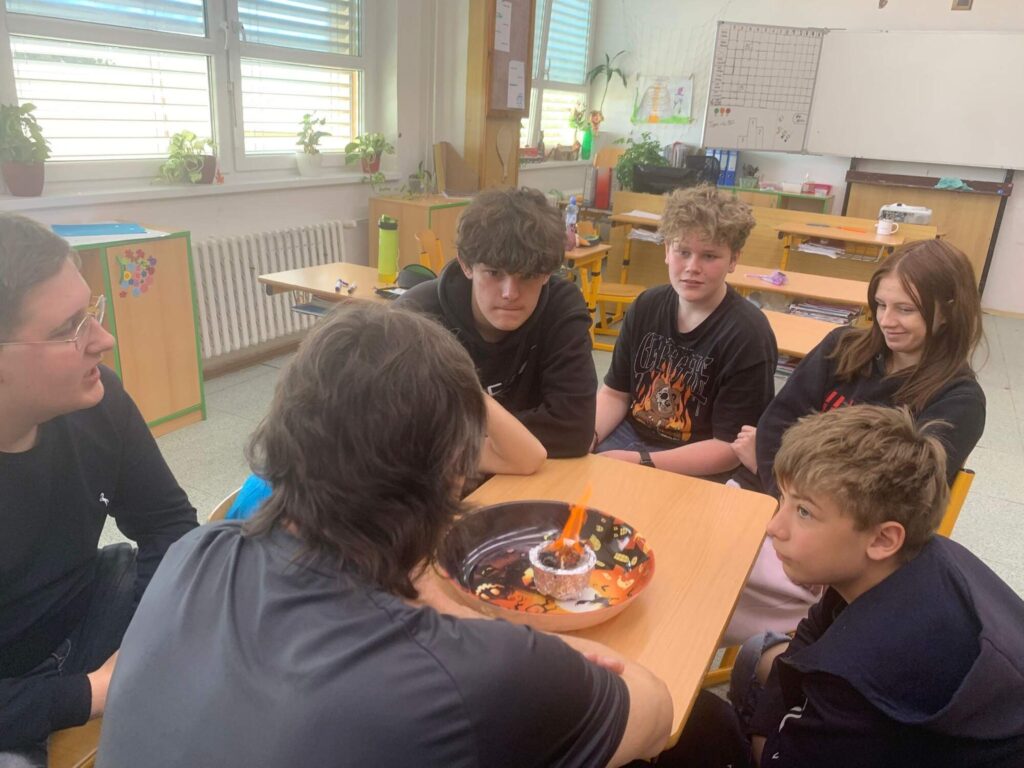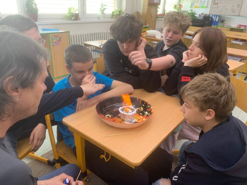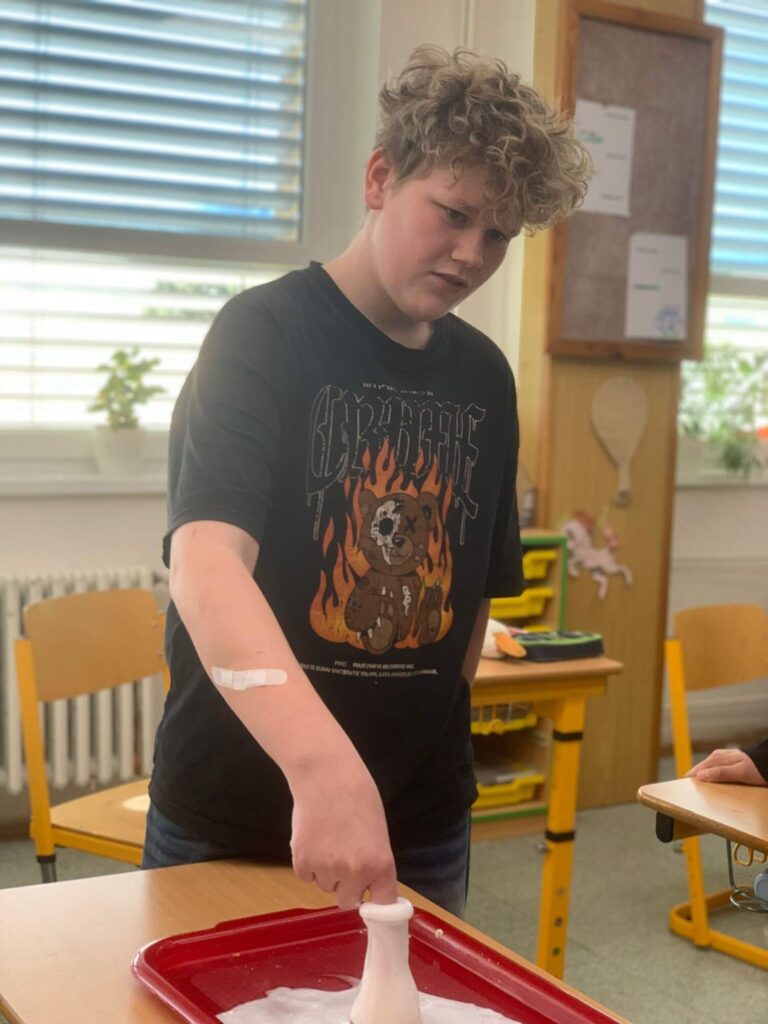 Celá hodina se nesla v duchu zábavné chemie. Žáci byli aktivní, zapojovali se do diskuse a s nadšením sledovali jednotlivé pokusy. Ukázalo se, že když se výuka propojí s praktickými ukázkami, dokáže chemie zaujmout opravdu každého.