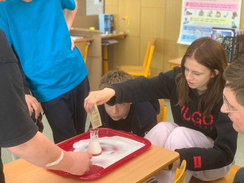 V hodině chemie v VIII. třídě jsme se tentokrát pustili do netradičních a velmi efektních pokusů, které žákům ukázaly, že chemie není jen o vzorcích a rovnicích, ale také o zážitcích a objevování.